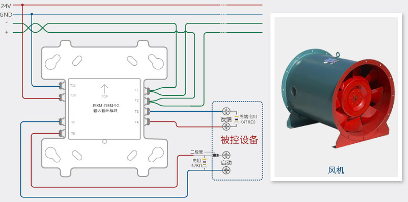 1、單速風機接線方法:一般情況下,所配電機功率在3kW(包括3kW)以下為Y接法;3kW以上為△接法。接線圖如 下:
